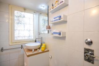 Diese Ferienwohnung mit Klimaanlage und 1 Schlafzimmer verfügt über 1 Badezimmer, ausgestattet mit einem Bidet, einer Dusche und kostenlosen Pflegeprodukten. Die Küche ist ausgestattet mit einem Kühlschrank und einem Ofen, einer Herdplatte sowie einer Kaffeemaschine und einem Wasserkocher.
